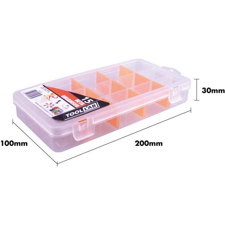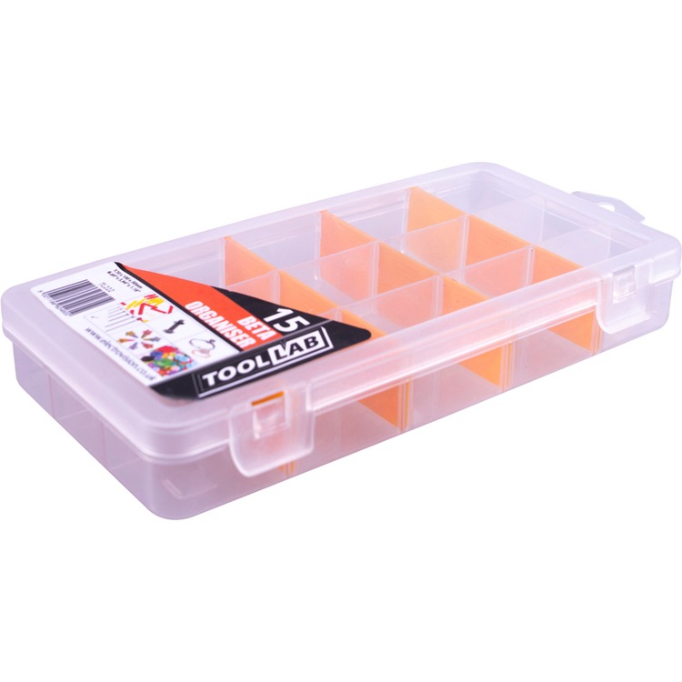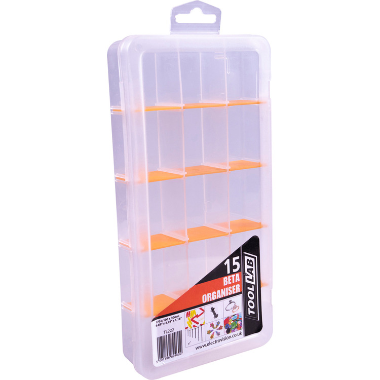 8" Beta Organiser Box with 15 Compartments, Movable Dividers and Lid perfect for storing your DIY essentials and small parts easily and securely.